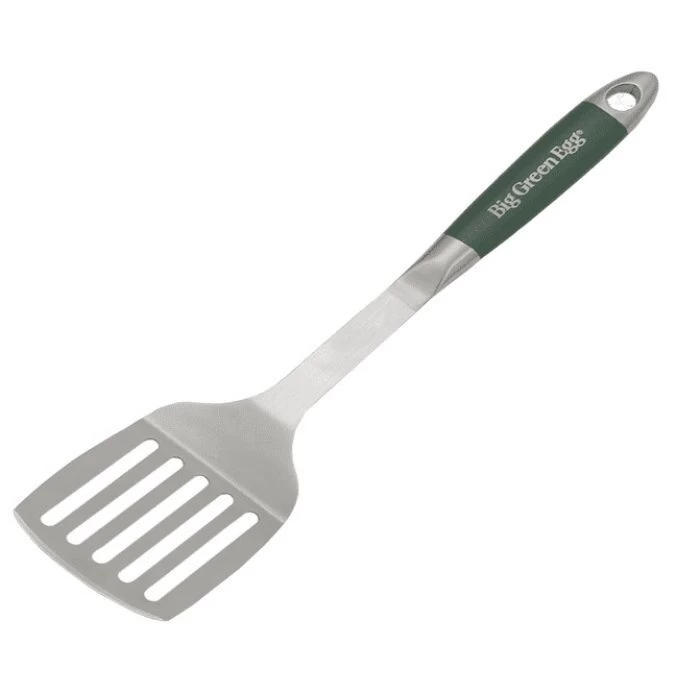 De Big Green Egg grillspatel is gemaakt van roestvrijstaal en kunststof en is extra lang voor het veilig hanteren van uw eten op de barbecue. Gebruik de spatel voor het omkeren van hamburgers, andere stukken vlees of groenten.