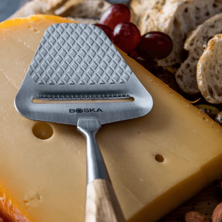 De Oslo+ kaasschaaf van Boska is gemaakt van roestvrij staal. De kaasschaaf is geschikt voor de halfharde tot harde kazen.