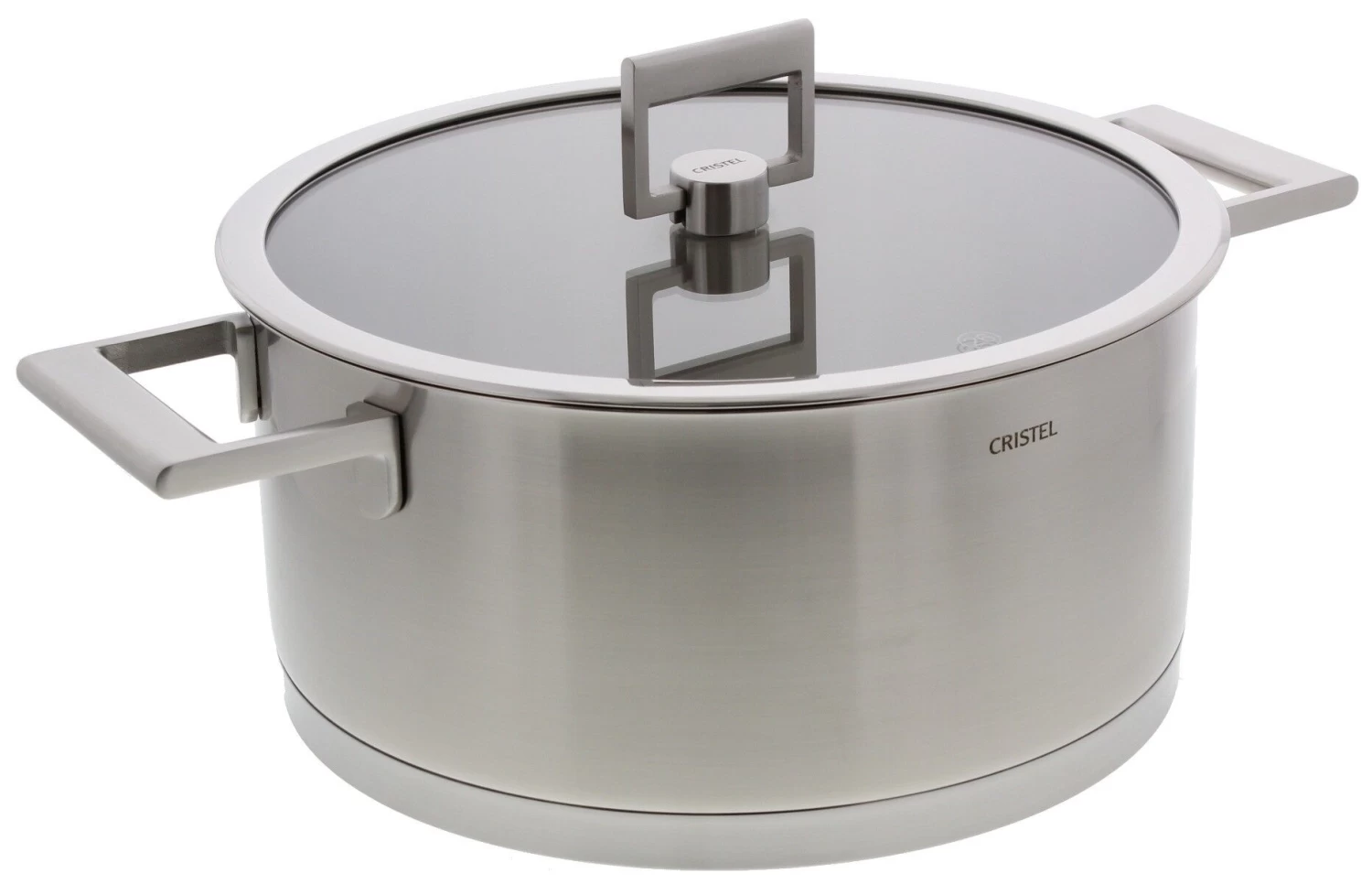 De pannen van de serie Strate van het Franse merk Cristel zijn voorzien van een extra dikke bodem. In de bodem zit een aluminium plaat die de warmte gelijkmatig over de bodem verdeelt. Uniek aan deze serie is dat de dikke aluminiumlaag in een L-vorm de hele bodem van de pan omkapselt. Buiten deze laag heeft de pan een roestvrijstalen bodem die voor goede verwarming op een inductiekookplaat zorgt. Een deel van de pannen en deksels heeft vaste grepen en een deel heeft losse grepen die van de pan gehaald kunnen worden zodat deze compacter wordt.