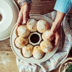 De Emile Henry kroonvormige broodbakpan is gemaakt van rood geglazuurd aardewerk. De broodbakpan heeft een diameter van 30,5 cm. Dankzij het materiaal van de broodbakvorm bakt u brood met een krokante korst en een zachte binnenkant. Dankzij de bollen in kunt u eenvoudig 8 kleinere broodjes of brioches per keer bakken.