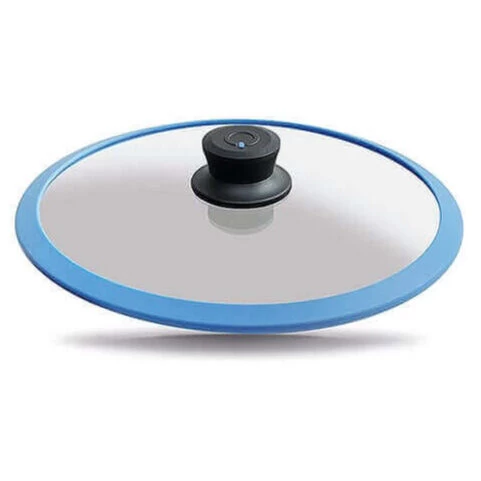 Tijdens het koken zit een ongeluk in een klein hoekje. Daarom is een aanvullende of vervangende deksel voor uw pan altijd een uitkomst. De deksel is voorzien van een blauwe silicone rand voor extra bescherming. De deksel is vervaardigd van hoge kwaliteit veiligheidsglas en is bestand tegen hoge temperaturen. In de knop is een automatisch stoom- en drukventiel verwerkt. Dit ventiel voorkomt overkoken van de pan of pruttelen van de deksel. Dit maakt het koken extra veilig en schoon. De deksel heeft een doorsnede van 28 cm en geschikt voor grotere sauteer- en koekenpannen.