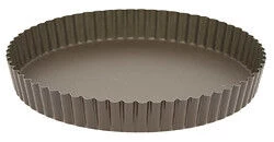 De Gobel quichevorm is gemaakt van staal, heeft een diameter van 26 cm en een hoogte van 2,5 cm. Voorzien van een antikleeflaag, een uitneembare bodem en een geribbelde rand. Met de vorm bakt u taarten en quiches.