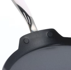 Deze collectie pannen van Greenpan biedt ingenieus ontworpen producten die er sensationeel uitzien en uitmuntende prestaties leveren. De pannenkoekenpan is vervaardigd uit aluminium met een roestvrij stalen greep en een keramische antiaanbaklaag. Doordat de pan van aluminium is gemaakt geleidt deze goed, hierdoor bereikt u snel de gewenste temperatuur en wordt er minder energie verbruikt. Dankzij de BalancePro-technologie blijft de bodem van de pan perfect vlak bij verhitting, zodat er minder olie of boter gebruikt hoeft te worden.