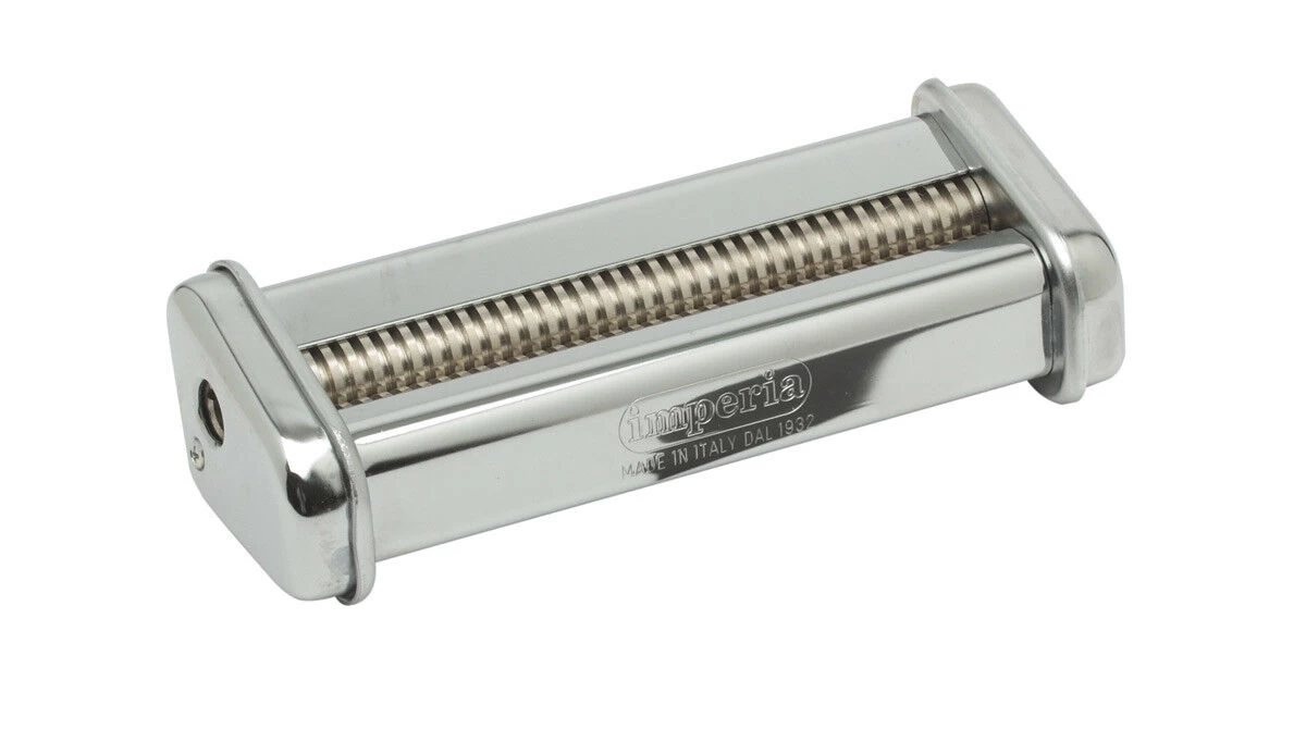 Gebruik het Imperia Simplex tagliatelle roestvrijstalen opzetstuk bij uw Imperia pastamachine. Met het opzetstuk maakt u tagliatelle, een pastasoort met slierten van 2 mm breed.