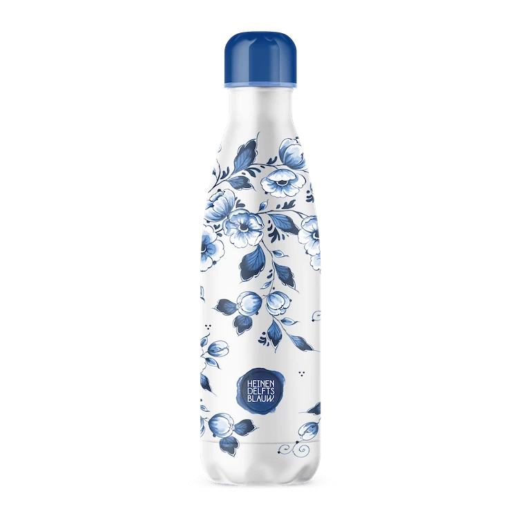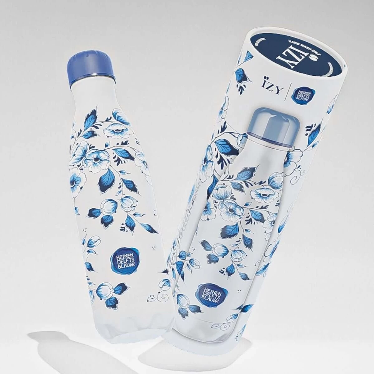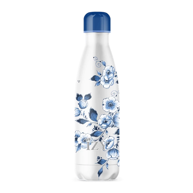 De IZY Bottles x Heinen Delfts Blauw drinkfles Blossom is gemaakt van roestvrijstaal en heeft een inhoud van 500 ml. Gebruik de IZY drinkfles voor het meenemen en op temperatuur houden van zowel warme als koude dranken. Dankzij de dubbele wand houdt de fles koude dranken tot wel 24 uur koud en warme dranken tot wel 12 uur warm.