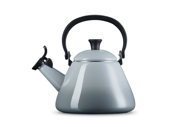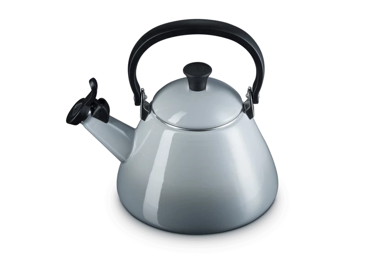 De Kone fluitketel van Le Creuset heeft een inhoud van 1,6 liter en is gemaakt van grijs geëmailleerd plaatstaal. Gebruik de fluitketel voor koken van water op alle warmtebronnen, inclusief inductie of op de potkachel.