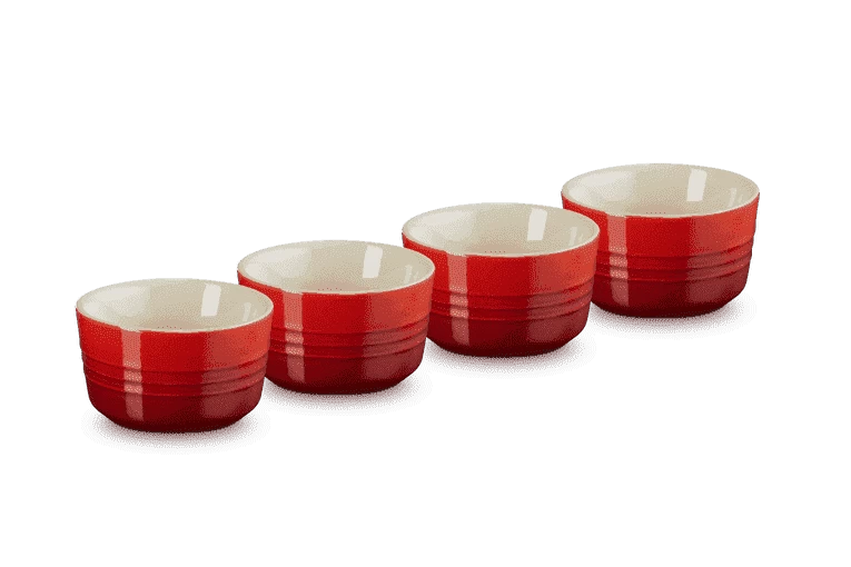 De ramekins van Le Creuset zijn gemaakt van geglazuurd aardewerk, uitgevoerd in rood, en hebben een glanzende afwerking. De schaaltjes hebben een diameter van 7,8 cm en een inhoud van 100 ml. Bereid in de ramekins van Le Creuset zoete en hartige soufflés.