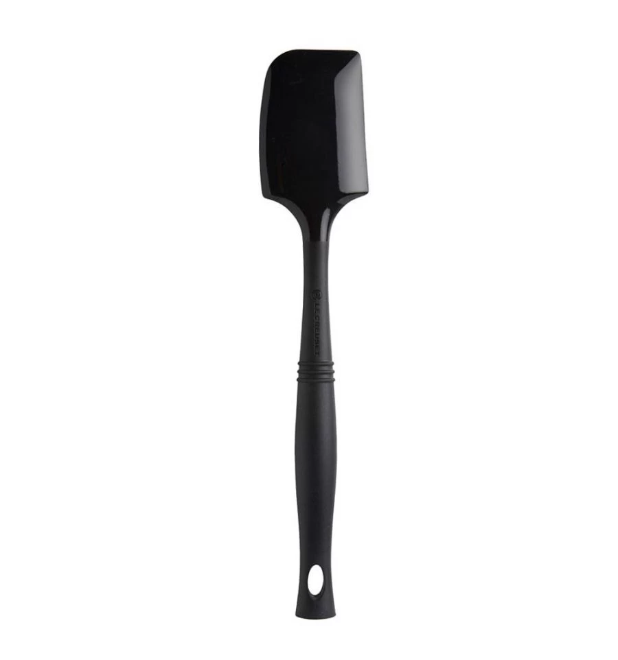 De zwarte Le Creuset spatel is gemaakt van silicone, waardoor de spatel niet krast. De spatel heeft een platte en bolle zijde en heeft een lengte van 32 cm. De lengte van het blad is 10 cm en de breedte 5 cm.