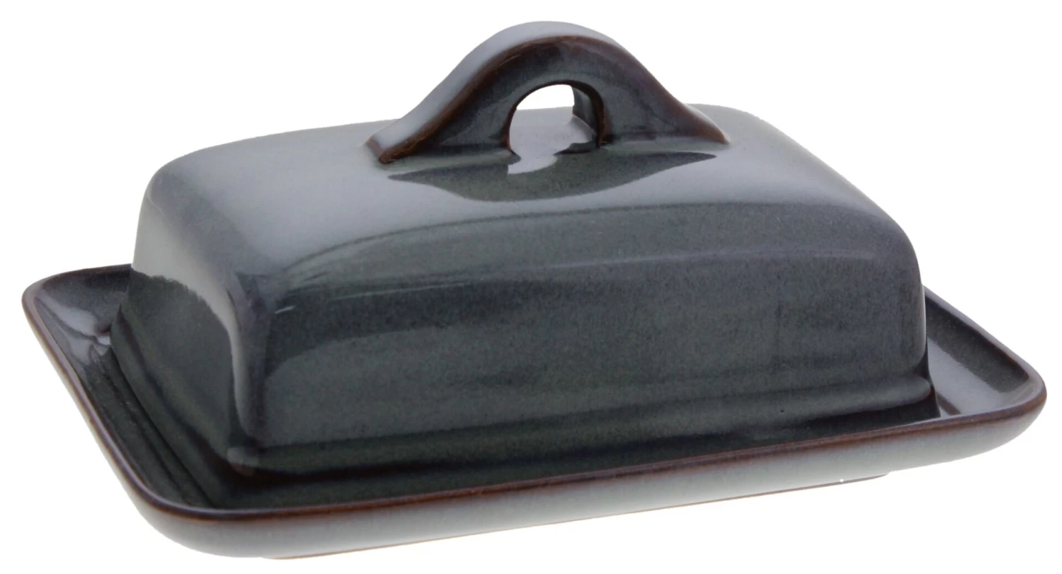 De rechthoekige botervloot van Oldenhof 1821 is gemaakt van olijfgrijs, geglazuurd aardewerk. De botervloot bestaat uit een lage schaal en een hoge deksel. Gebruik de botervloot om boter te bewaren en te serveren.