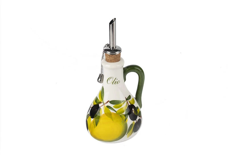 De Oldenhof olijfoliefles is gemaakt van wit aardewerk en voorzien van een decoratie van olijven en citroenen. De producten van Piccobella zijn ambachtelijk vervaardigd en handbeschilderd in Italië. Omdat het artikel met de hand gemaakt wordt kan het wat afwijken van de foto.