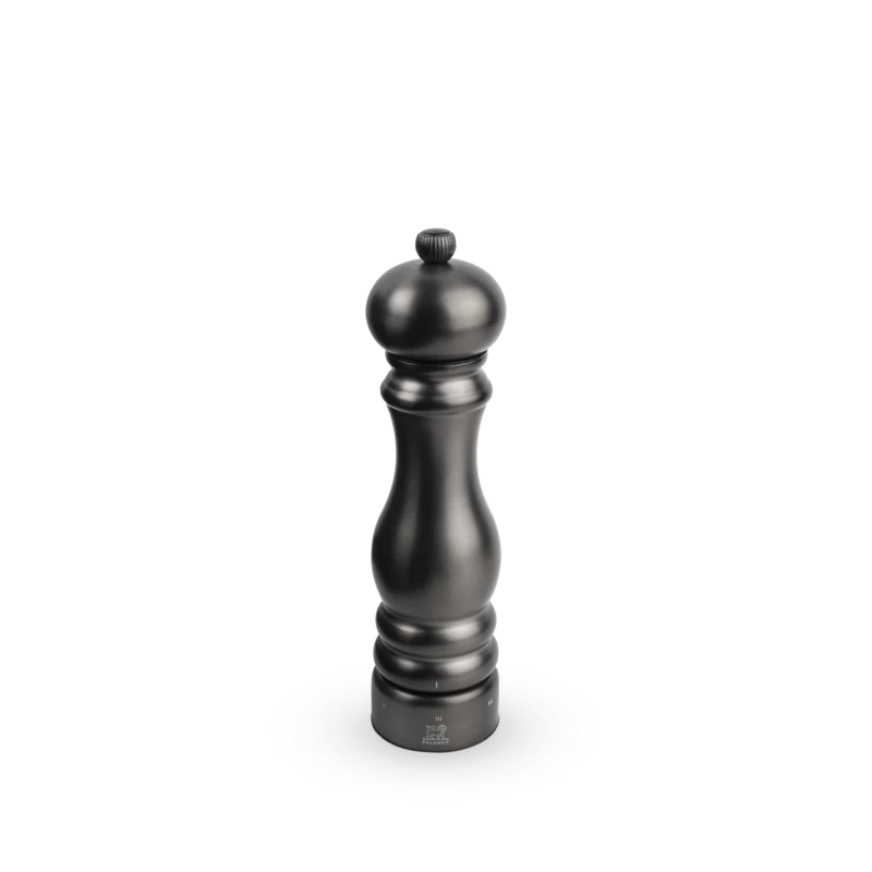 De geüpdatete klassieker Peugeot Paris Chef Carbone pepermolen heeft een roestvrijstalen maalwerk met u-select, waarmee de maalgraad traploos instelbaar is van poederfijn tot grof gemalen. Het maalwerk van de molen is uitgerust met een dubbele rij schroefvormige tanden die de peperbolletjes vastnemen en ze naar beneden brengen. Om deze vervolgens te blokkeren en te malen.