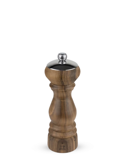 De Peugeot Paris Icône Noyer zoutmolen heeft het klassieke Peugeot model dat is herzien. De molen is gemaakt van walnotenhout. Aan de bovenzijde heeft de molen een roestvrijstalen kap. Hierdoor krijg de 18 cm hoge molen een moderne uitstraling. Het maalwerk in de molen is vervaardigd uit roestvrij staal. De molen is voorzien van u-select, waarmee u de grofheid van het zout traploos kunt instellen. Op de metalen draaiknop bovenop bevindt zich de het logo van Peugeot.