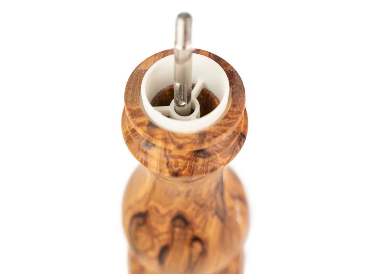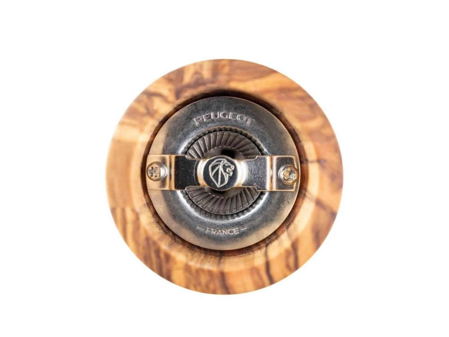 De Peugeot Paris Olivier zoutmolen heeft het klassieke Peugeot model, maar is uitgevoerd in olijfhout waardoor het een unieke uitstraling heeft. De zoutmolen heeft een hoogte van 18 cm. Het maalwerk in de molen is vervaardigd uit roestvrij staal. De grofheid van de korrel kunt u traploos instellen. Op de metalen draaiknop bovenop bevindt zich de het logo van Peugeot.