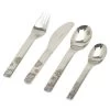 Het Merci Mix bestek stone-washed, waardoor het staal mat en verweerd is geworden.