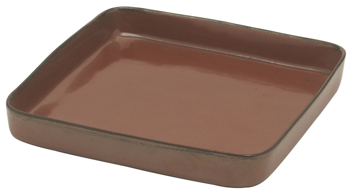 Het vierkante Serax Terres de Rêves bord heeft een lengte en breedte van 18 cm en een hoogte van 2,5 cm. Het van stoneware gemaakte bord is geglazuurd met roestkleurig email.