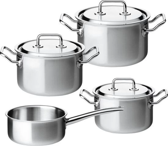 De Spring Brigade Premium pannenset bestaat uit 3 kookpannen en een steelpan. De set is vervaardigd uit geborsteld roestvrij staal en heeft een aluminium kern voor een goede, gelijkmatige warmteverdeling. Gebruik de Spring pannen voor uw dagelijkse kookwerkzaamheden in de keuken.