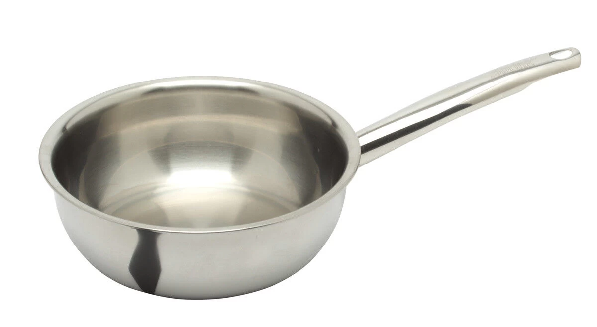 De moderne ronde sauspan van Spring Brigade Premium volgt de vorm van uw roerlepel of garde, zodat u effectief roert. De pan is gemaakt van roestvrij staal en heeft een aluminium kern. Voor een gelijkmatige warmteverdeling tot de rand. Dit voorkomt aanbranden van saus. De waterdichte, holle steel neemt weinig warmte op.