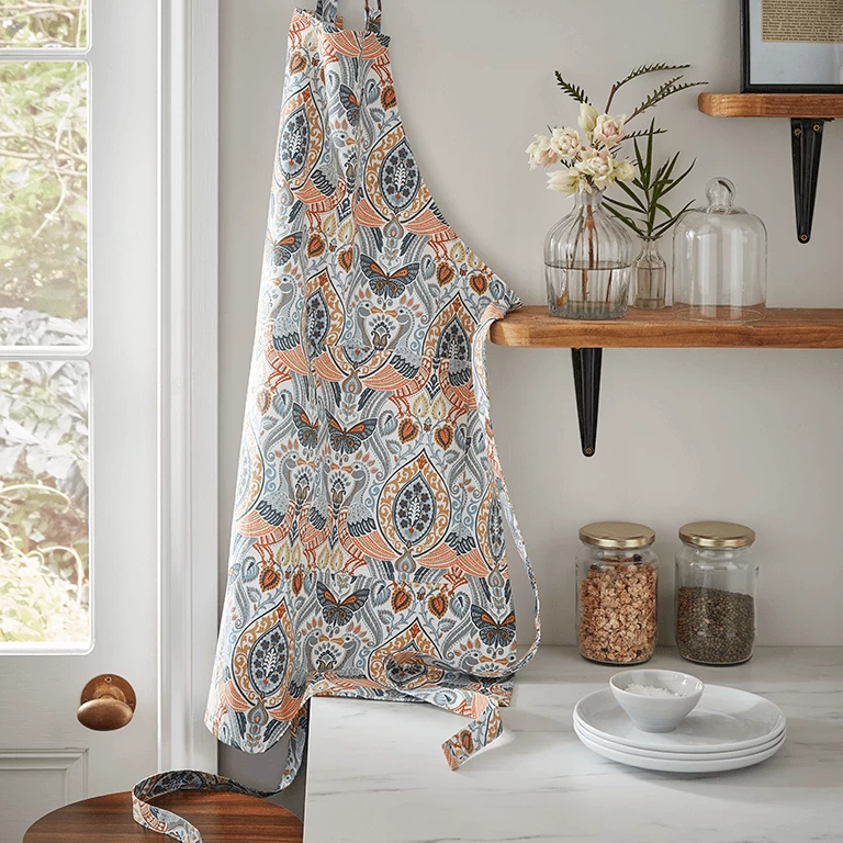 Het Ulster Weavers Cotswold schort is gemaakt van katoen. Gebruik het schort om uw kleding tegen spetters en vlekken te beschermen. Het Cotswold schort is voorzien van een afbeeldingen van vlinders met een oranje ondergrond. Het schort is 95 cm lang en 70 cm breed.