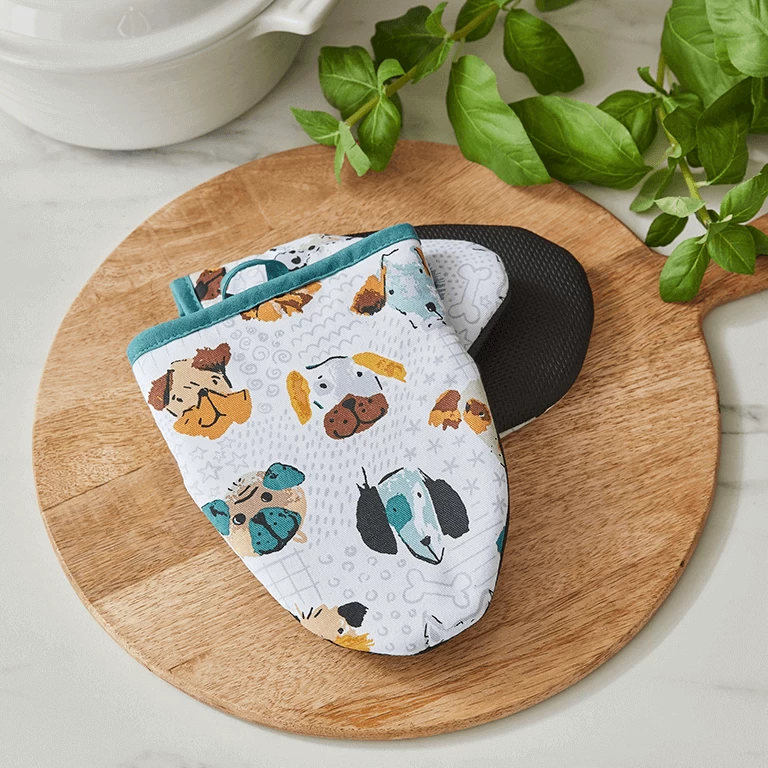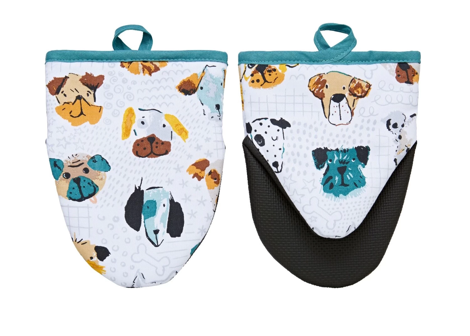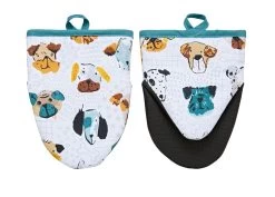 De blauwe Mutley Crew ovenwanten set is perfect voor het hanteren van hete potten en schalen tot 100 graden Celsius. De handpalmen van neopreen beschermen tegen stoom en heet water en helpen uw vingers veilig te houden bij het hanteren van uw nieuwste culinaire meesterwerk. Het design van de ovenwanten is geïnspireerd op de vele verschillende hondensoorten die er zijn.